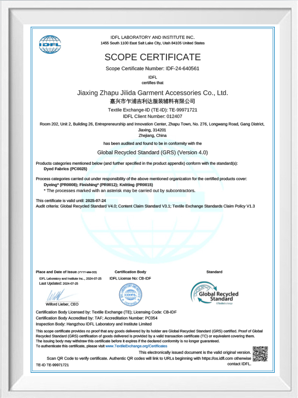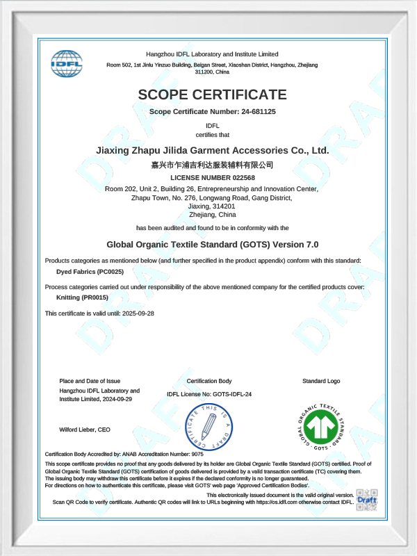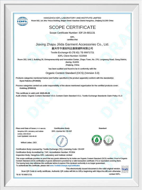 Jiaxing Zhapu Jilida Konfeksiyon Aksesuarları Co., Ltd. ayrıca teknolojik yenilik ve ürün geliştirmeye odaklanmaktadır. Şirket, pazarın değişen ihtiyaçlarını karşılamak için sürekli olarak yeni kumaş ve ürünleri piyasaya sürmeye adanmış profesyonel bir Ar-Ge ekibine sahiptir. Bu sürekli yenilik ruhu, Jilida'nın şiddetli pazar rekabetinde her zaman lider konumunu korumasını sağladı.